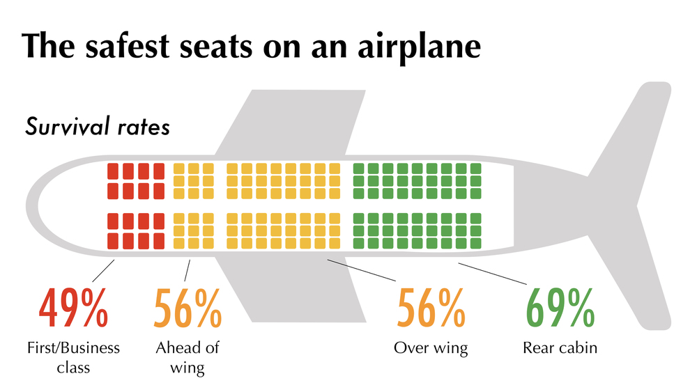 Avoid the aisle seats in the middle to rear 10 rows, which have shown higher fatality rates in crash data.